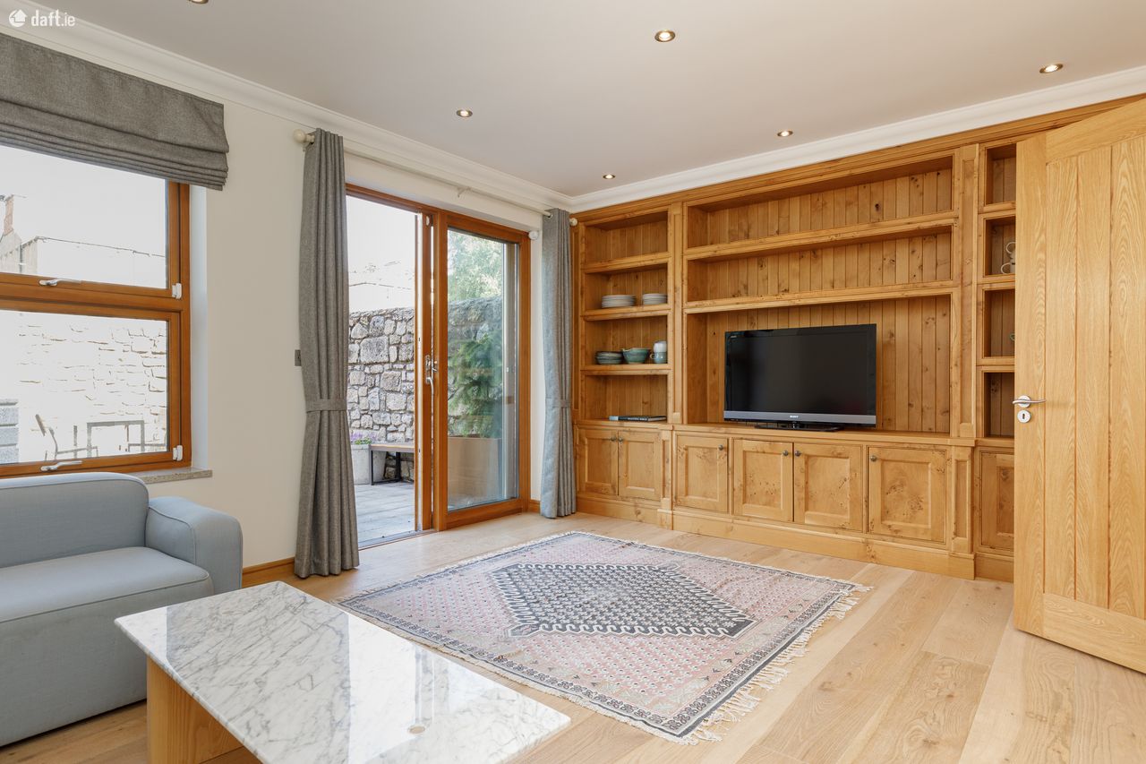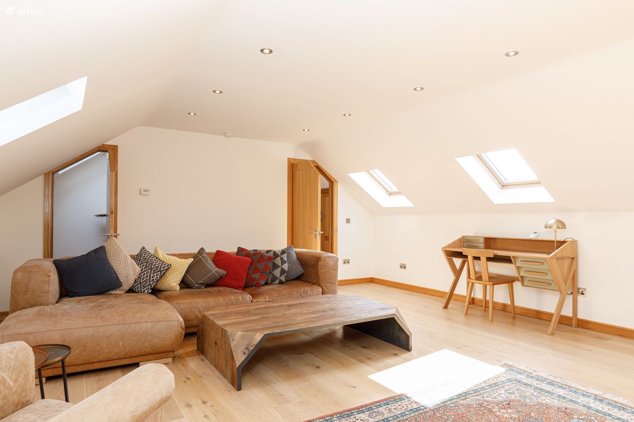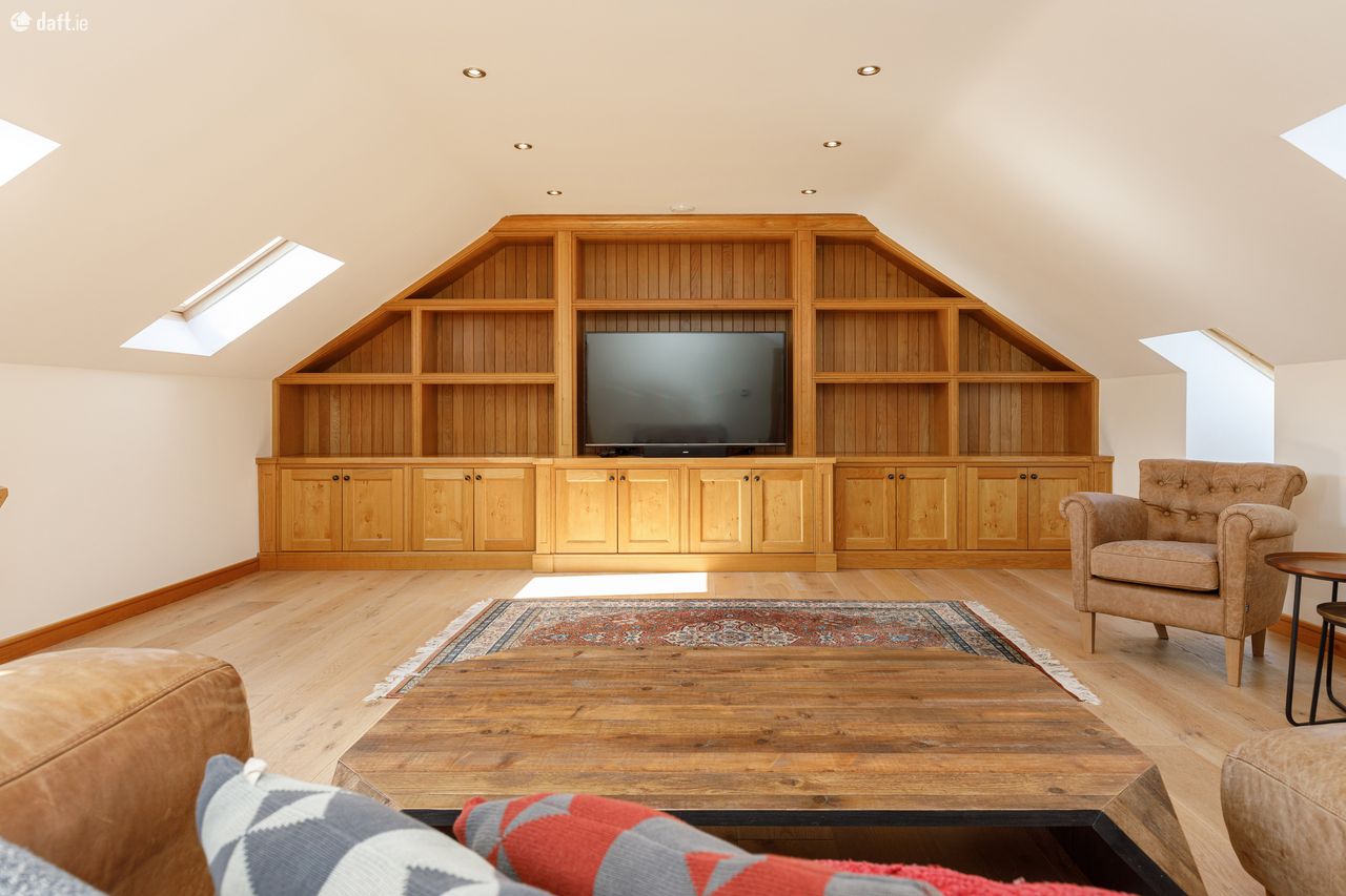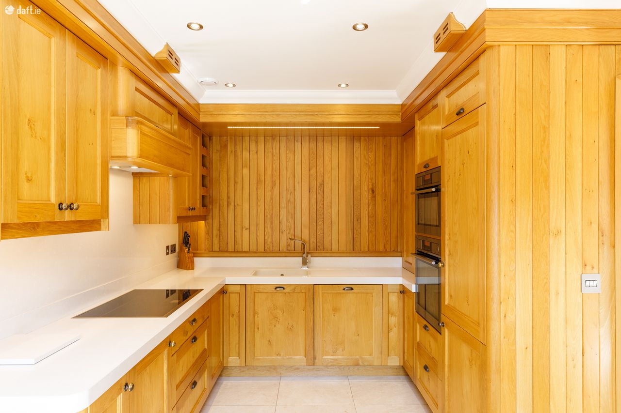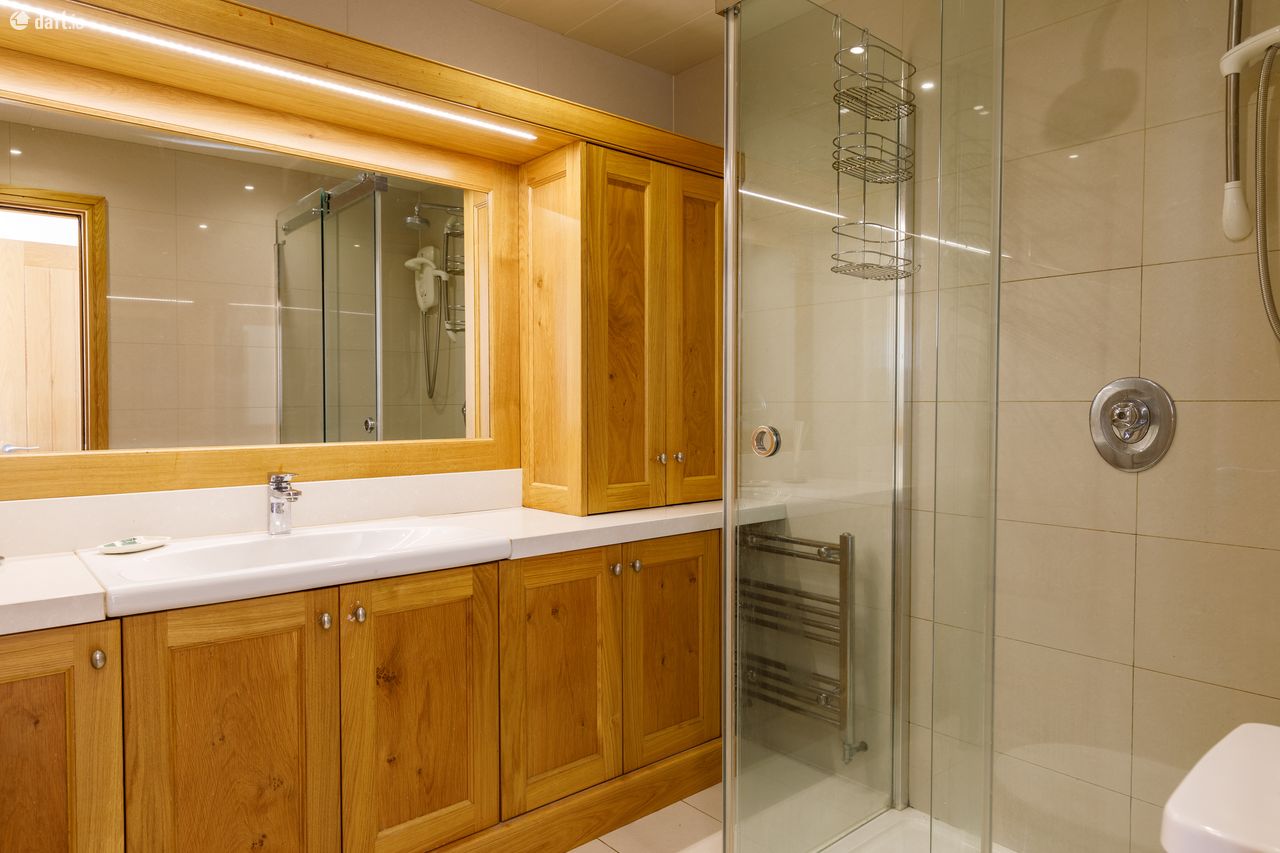 The impressive house was built in 2014/5 with underfloor heating and bespoke trunk wooden flooring throughout. The beautiful oak fittings and cabinetry were designed and made by Andrew Ryan, and the kitchen worktops completed by Miller Bros. Stone. Outside walls are Wicklow Granite and have ground lights built in.