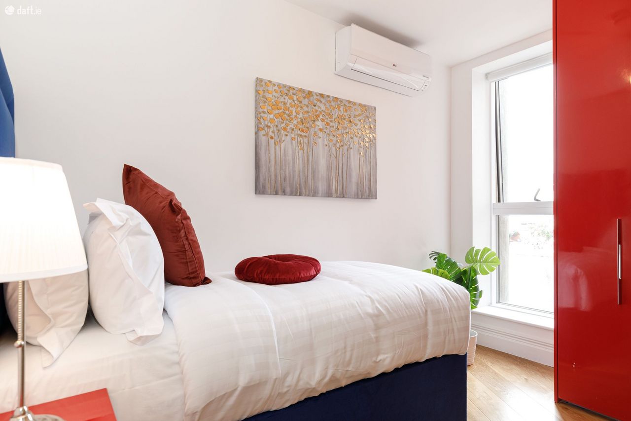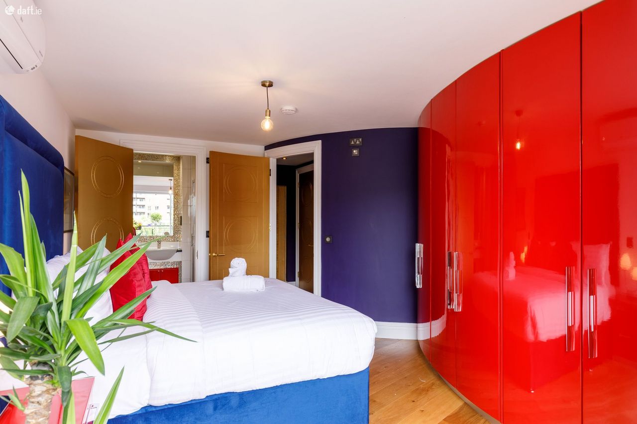 Bespoke are delighted to present this air conditioned spectacular, modern, spacious and luxurious three bedroom apartment to rent in this award winning building. The apartment has just been fully refurbished and interior designed to a high end featuring jacuzzi bath, motorised blinds, smart technology, Sonas surround sound and much much more. The curved kitchen is designed with state of the art applicances, round induction hob, instant boiling water tap. Bedrooms have been fitted with bespoke curved wardrobes Boasting a huge wrap around balcony with unrivalled views of the Canal,, the property has 2 double bedrooms (one ensuite), single bedroom and a stunning bathroom with jacuzzi bath. Large open plan kitchen/dining sitting room with separate utility room. Viewing is highly recommended for this once in a lifetime apartment. Can be rented furnished or unfurnished. Note can be rented also as a fully serviced apartment. The Millennium Tower is a hugely sought after development adjacent to Bolands Quay and Grand Canal Square with its Martha Schwartz designed plaza which includes the Grand Canal Theatre. overlooking Grand Canal Dock in Dublin’s most fashionable city quarter, home to a variety of neighbourhood bars, bistros, cafes and restaurants which cluster around the historic city dock. St. Stephen’s Green, Ballsbridge, the IFSC and Sandymount are all within a 15 minute walk whilst the DART at Grand Canal provides easy access to the city centre and beyond. The locality benefits from a broad range of multi-nationals including Google, Airbnb, Facebook, HSBC and many more.