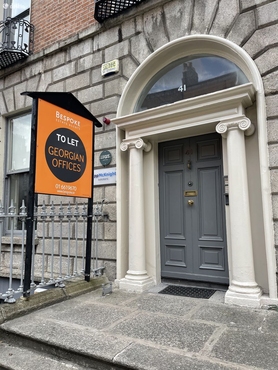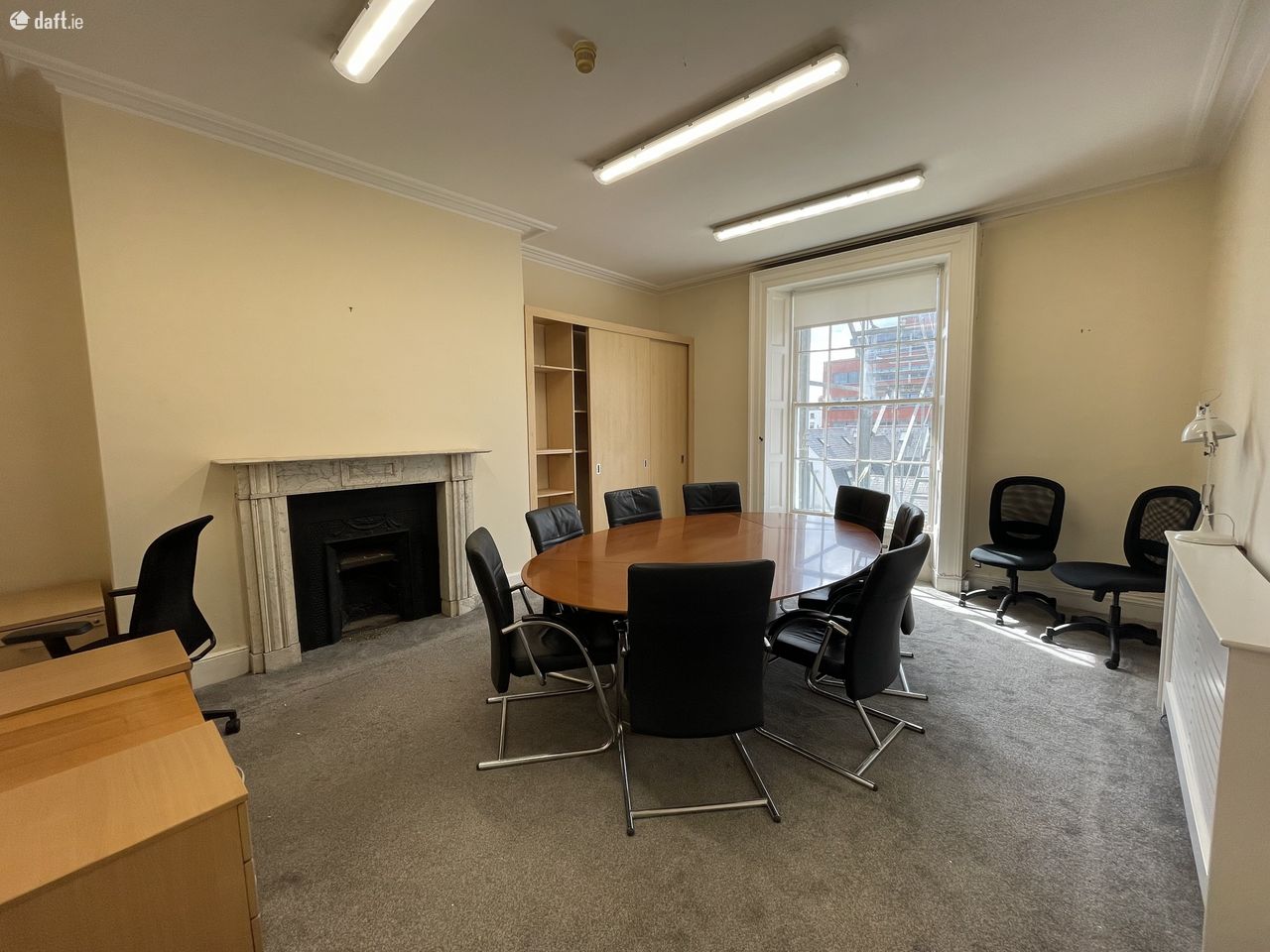 Top two floors of Georgian office in the heart of the Dublin’s central business district comprising two private offices with large boardroom or shared office space on second floor including server space and storeroom. Top floor is split into 4/5 small offices. There is a shared kitchen below along with restrooms.