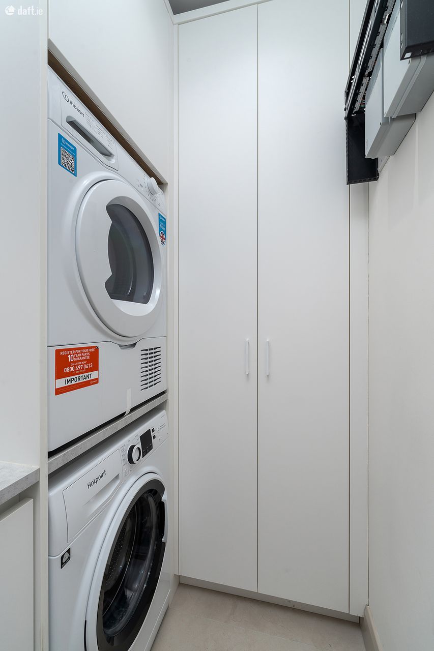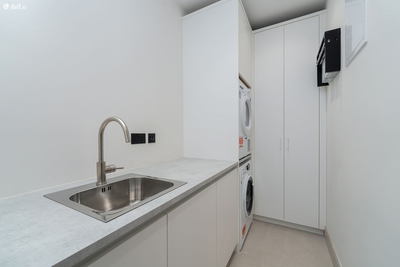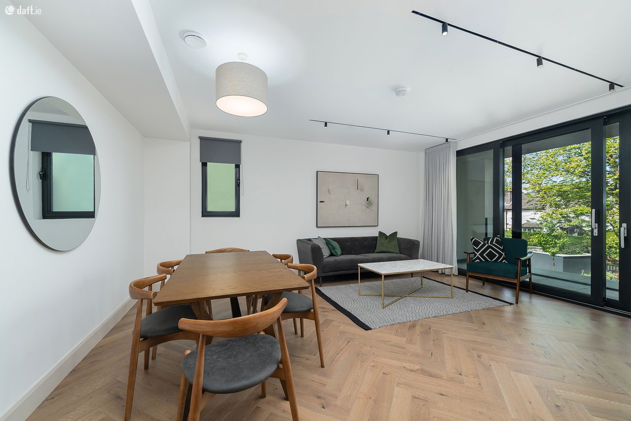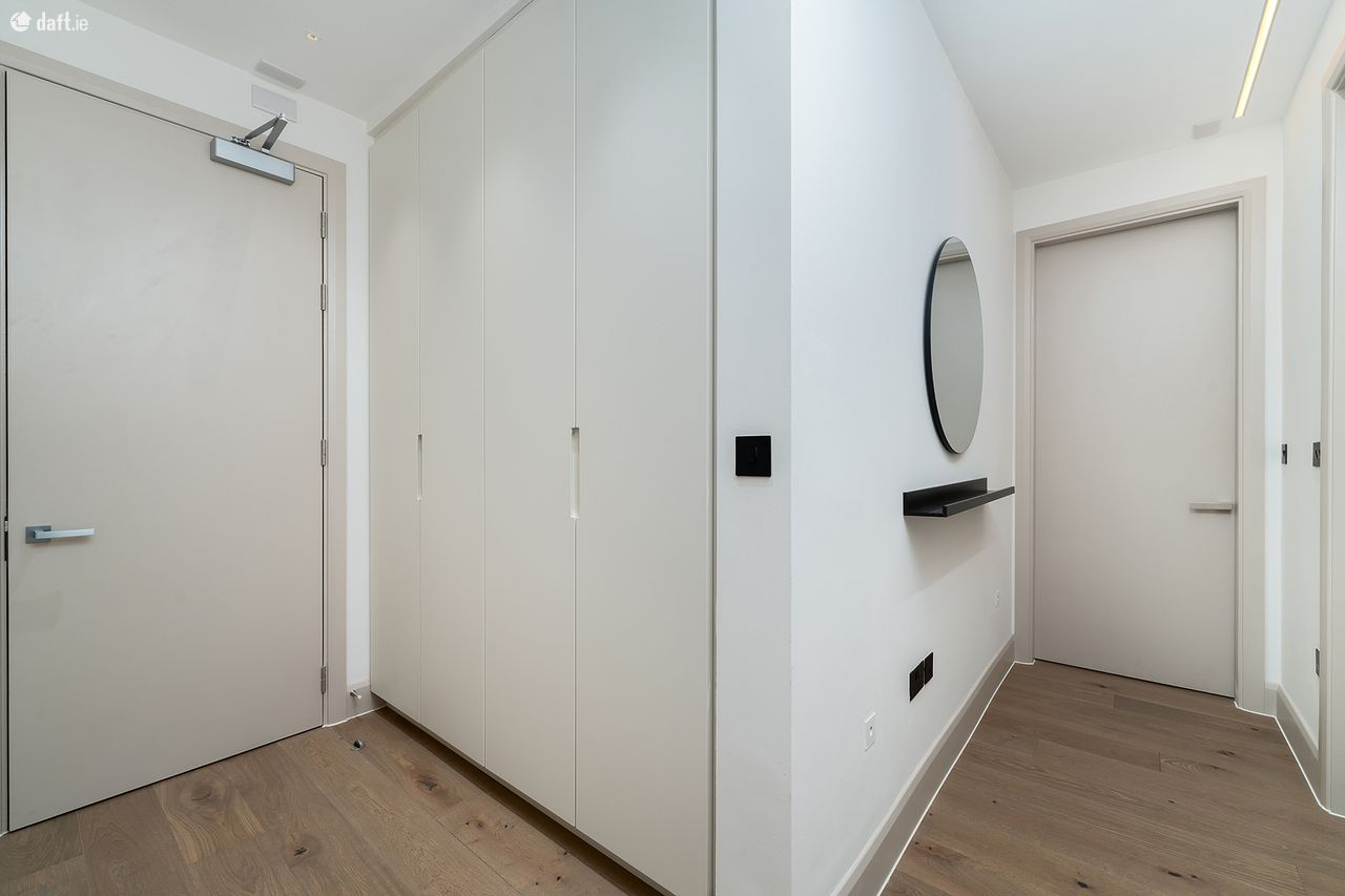 Situated in Blackrock, one of South Dublin s most desirable locations, it benefits from a host of amenities on the doorstep. The apartment is exceptionally spacious and features high end finishes to include bespoke handmade kitchens complete with Siemens appliances, spacious utility room with washing machine and separate tumble dryer, ample storage and a sink. The apartment benefits from a contemporary bathroom and Master ensuite. Beautiful oak timber floors in living room leading to a large balcony. Both bedrooms have fitted cupboards.