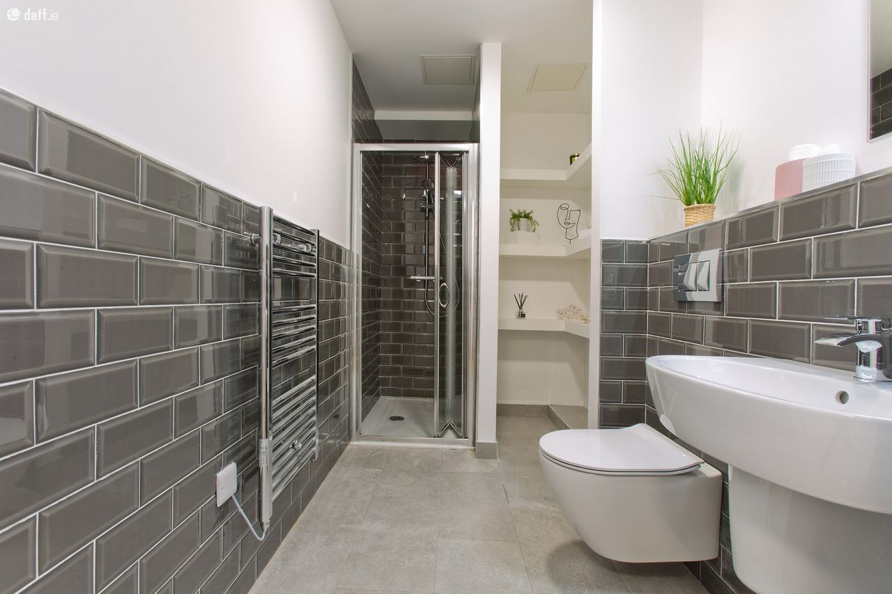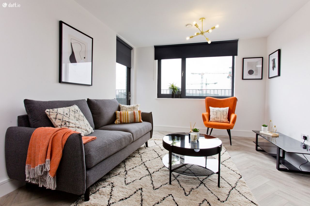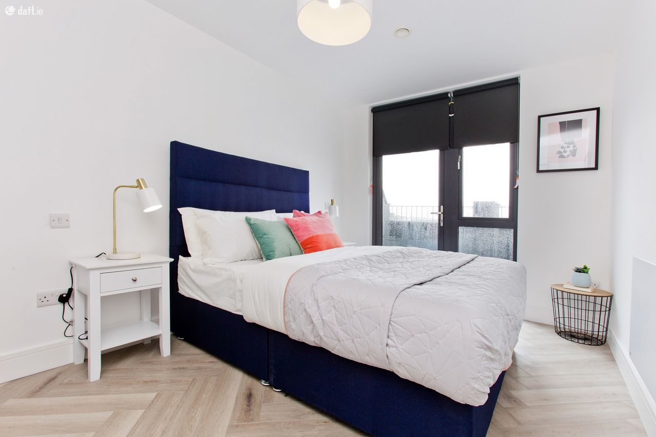 Furnished to the highest standard, the accommodation comprises an entrance hall with two spacious presses leading to the open plan kitchen & living room with herringbone wood floor and high quality fully fitted kitchen. Stylish tiled bathroom with heated towel rail and built in linen store. Bedroom with built in wardrobe and door to private deck. Private deck area with panoramic views over the city.