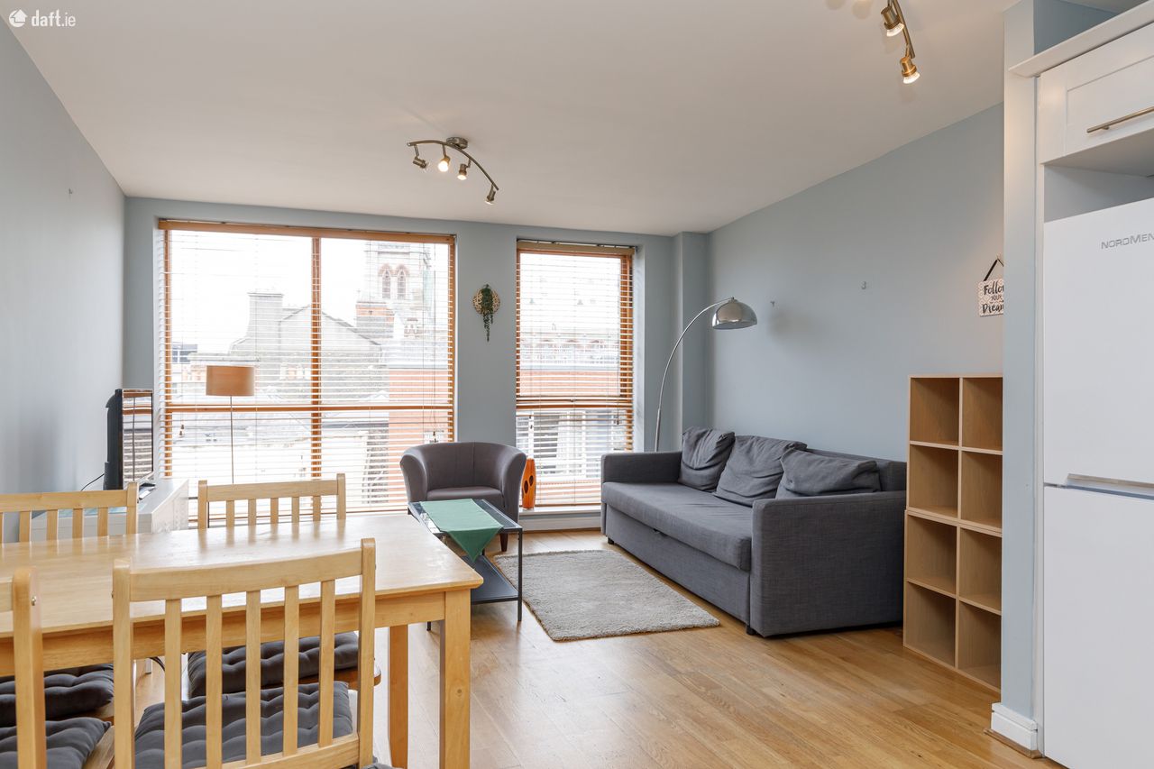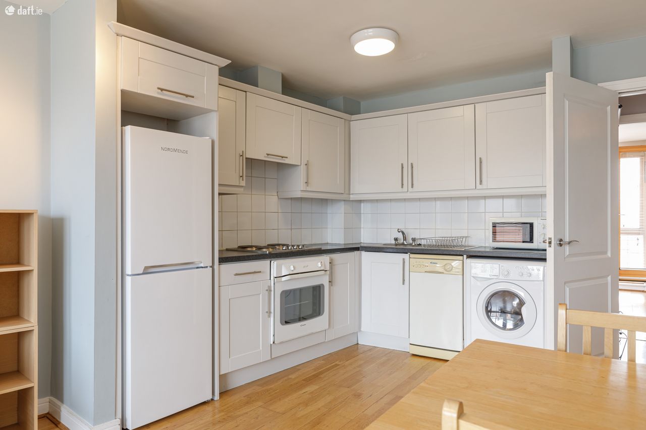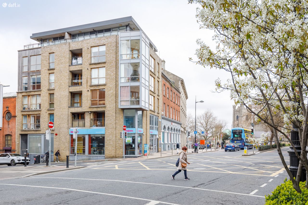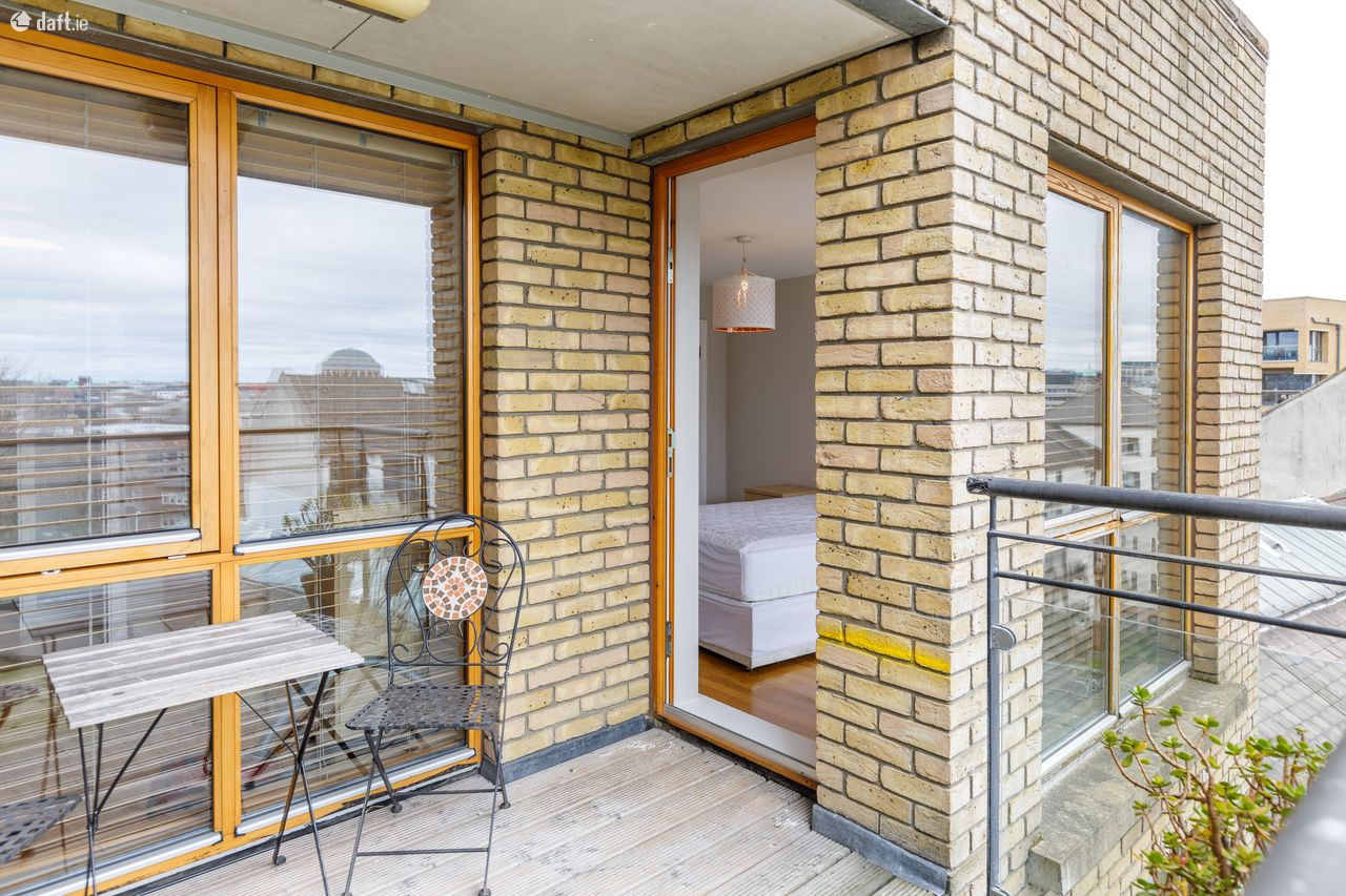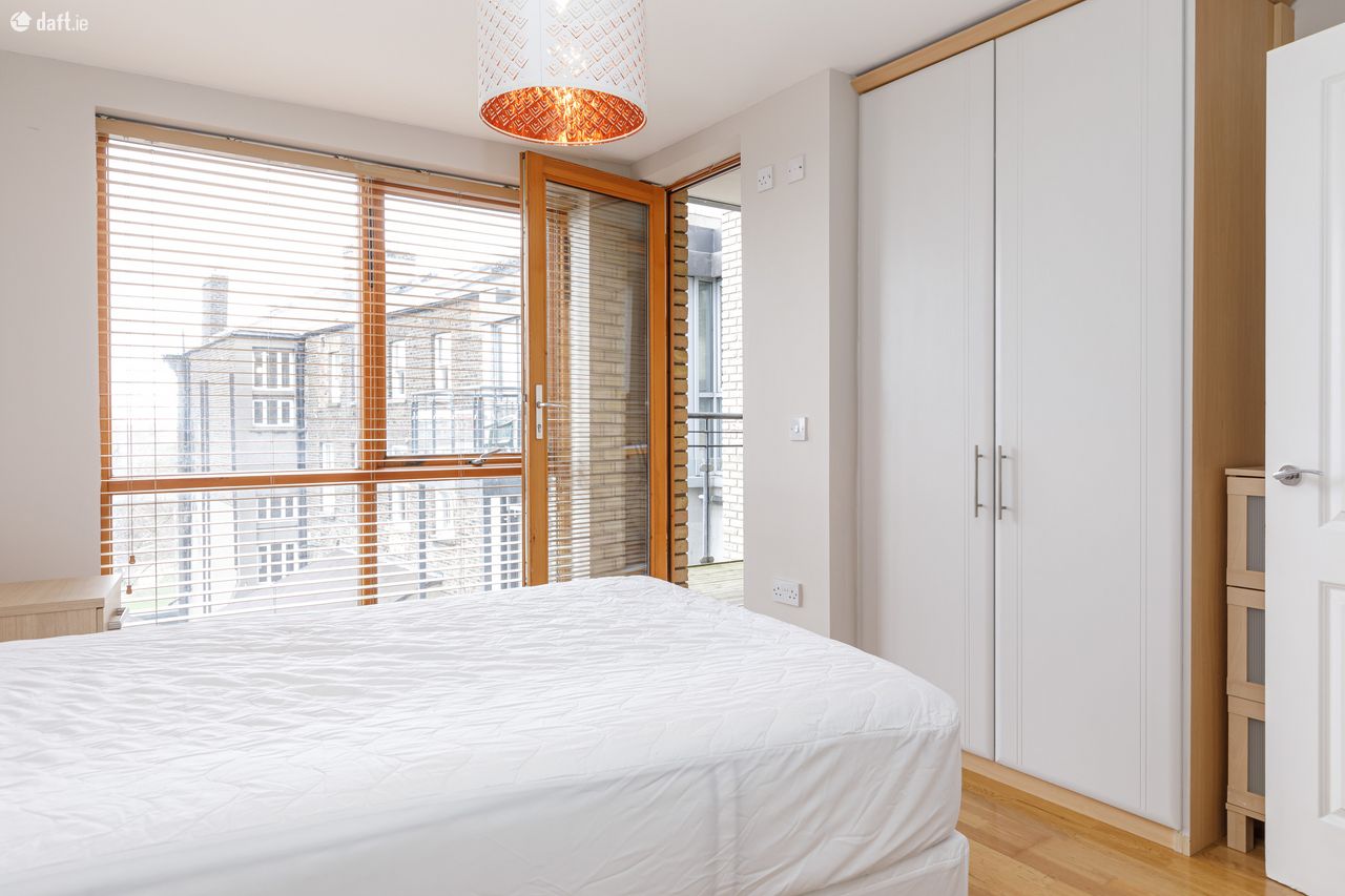 Bespoke are delighted to offer this fantastic 4th floor apartment in bank house. Bank house is a well managed block superbly located close to a host of attractive amenities including cafes, restaurants, supermarkets, some of Dublins best shopping, cinemas, theatres such as the Olympia, museums and much more. Grafton Street is less than 900m walk, Baggot Street is approx 1.2km walk, Dame Street is less than 950m walk, Trinity College is less than 1.45km walk and Google is approx 2.8km walk. The apartment is on the 4th floor with excellent views of Dublin City. The property comprises: entrance hall, living room large floor to ceiling windows, large kitchen with all the mod cons inc dishwasher, large master ensuite bedroom with direct access to a balcony with excellent views, single bedroom with built in wardrobes and access to the balcony, bathroom with bath and shower.