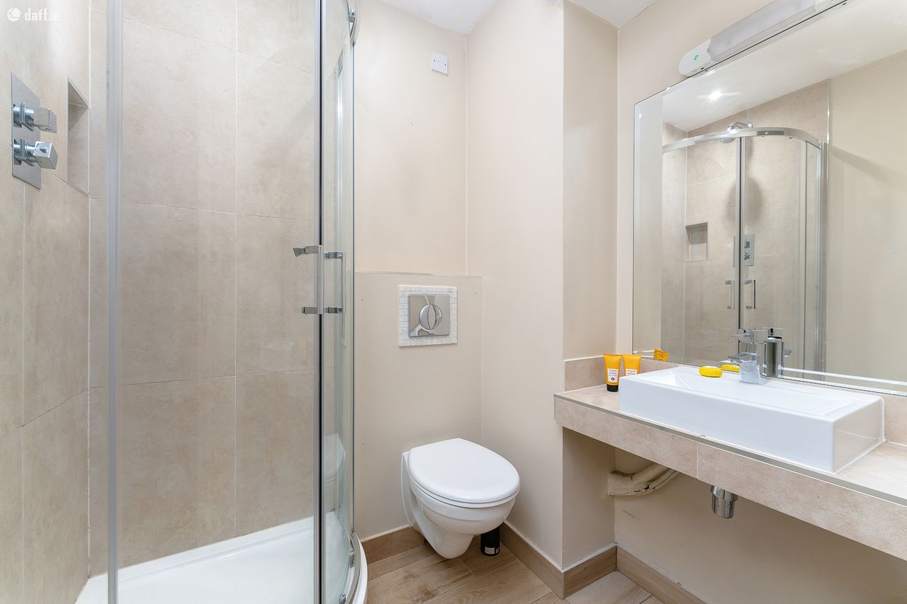 This 74m sq apartment comprises of a good sized entrance hallway with plenty of storage, an open kitchen and dining room with all mod cons, leading to a light filled living room with ornate fire place and views over South Dublin and the mountains in the distance. Off the hallway is a large main bathroom, two double bedrooms with south facing views, one with en suite and plenty of storage in both. Allocated parking to the rear, secure access to the building and a lift are some of the features in the development.