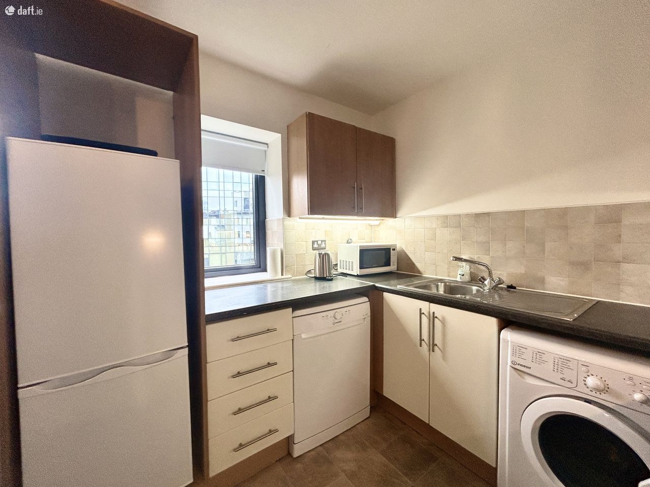 The apartment comprises of a fully fitted kitchen leading to a bright and spacious dining/ living room with south facing balcony overlooking the tranquil River Camac. The apartment is fully furnished and presented immaculately throughout. There are two large double bedrooms with ample wardrobe space. Both the master bathroom and the En-suite have recently been refurbished to an exceptional standard.