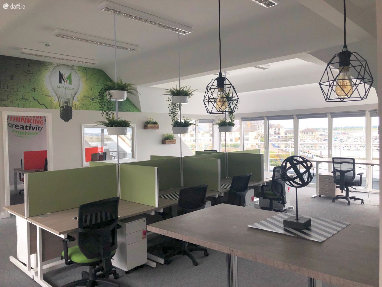 M-Space – a stunning co-working office in Malahide. Enviable location on the top floor of the Marine Court Centre, located right in centre of Malahide Village with stunning views over Malahide Marina and Estuary.