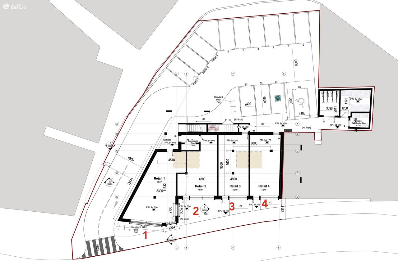 Retail Unit 1: 69m2 (743ft2) corner unit 40,000 per annum